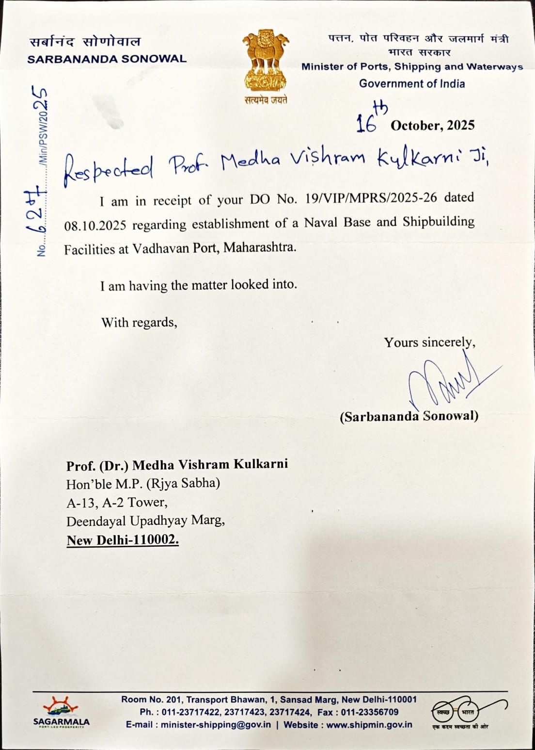 Formation of Naval Base and Ship building and ship repair facilities at Vadhawan Port